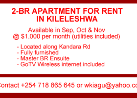 A fully furnished 2-bedroom apartment in Nairobi is available for leasing during the months of…
