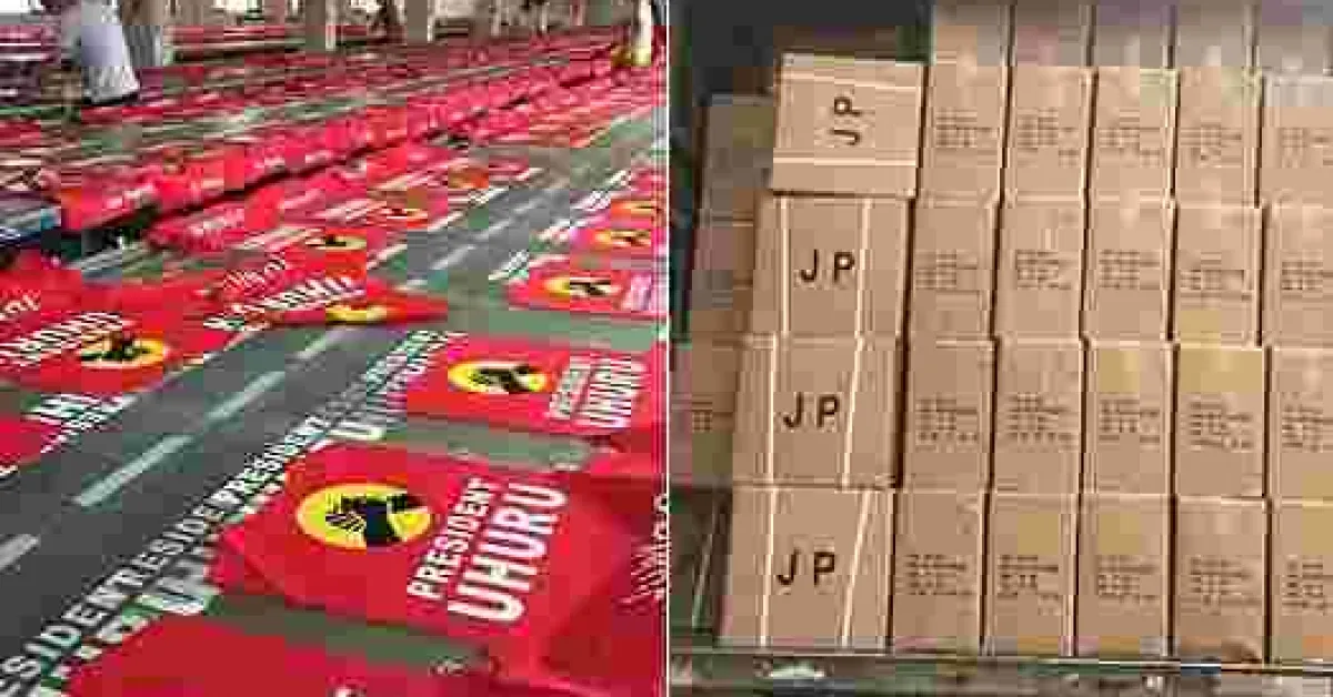 Photos of Jubilee campaign materials printed in China have sparked outrage among Kenyans on social media, with Kenyans questioning why they Jubilee to contract a Chinese firm with the printing instead of offering the task to Kenyans and create employment.