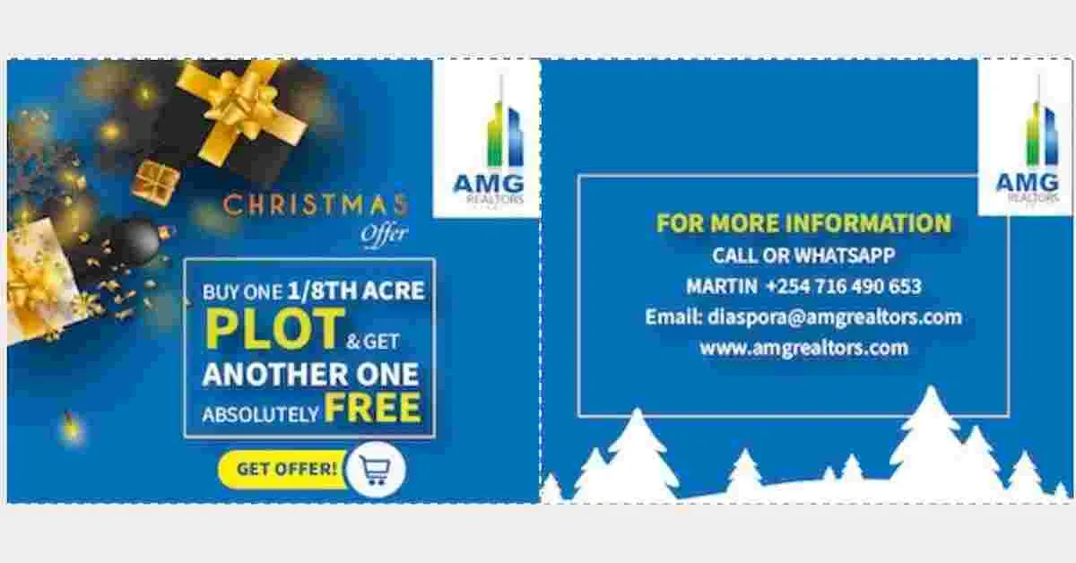 Get in touch with our Sales manager Martin on +254 716 490 653, or visit www.amgrealtors.co.ke