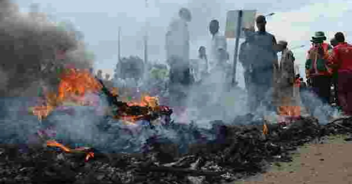 The rowdy youth set ablaze the banner before police lobbed teargas canisters to disperse them as they blocked Kisumu-Nairobi Road, halting operation on the busy highway.