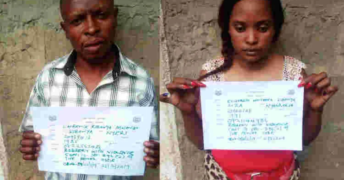 The two suspects have been identified as 27-year-old Elizabeth Waithera Kibanya from Nyandarua and 34-year-old Lawrence Kibanya Mwangi from Nyeri County.