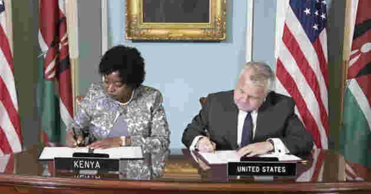 The agreement was jointly signed by Kenya's Cabinet Secretary for Foreign Affairs and International Trade Amb. Monica Juma and US Deputy Secretary of State John Sullivan.