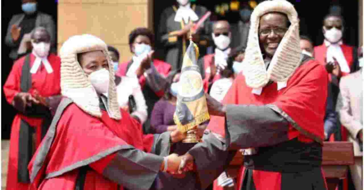 During a special ceremony held at the Supreme Court buildings on Monday, Maraga handed over the institutional flag to Mwilu, signifying the transfer of authority to the acting Chief Justice.