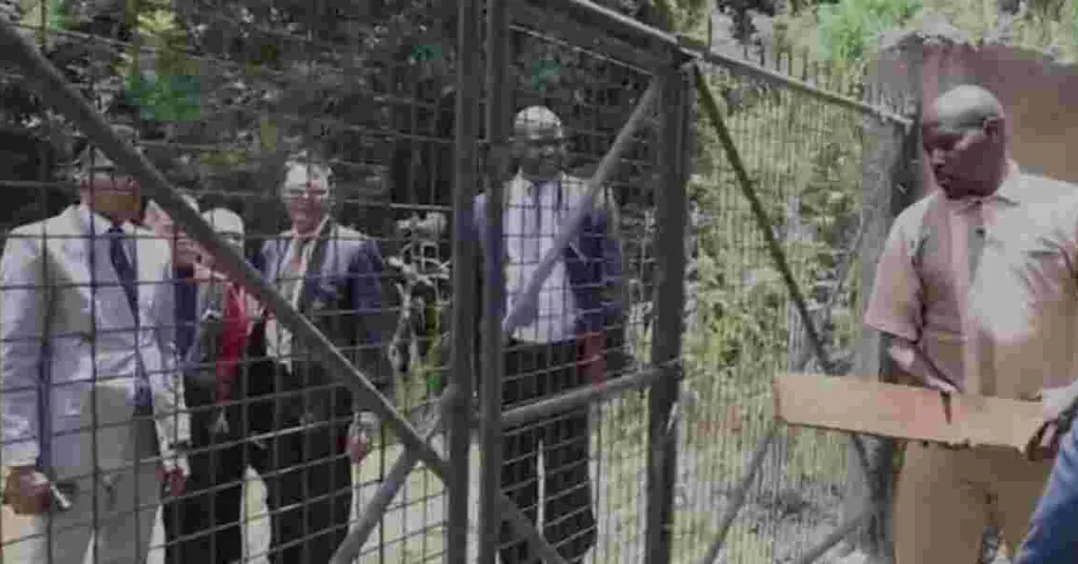 The CS firmly instructed the police to ensure the apprehension of the two individuals responsible for locking the gate. One of the arrested individuals claimed not to have the keys and eventually broke the lock with a wooden log, allowing Ms Wahome and her team to leave. According to reports, the individuals involved are suspected to be affiliated with the former official who is purported to have illegally acquired the land.