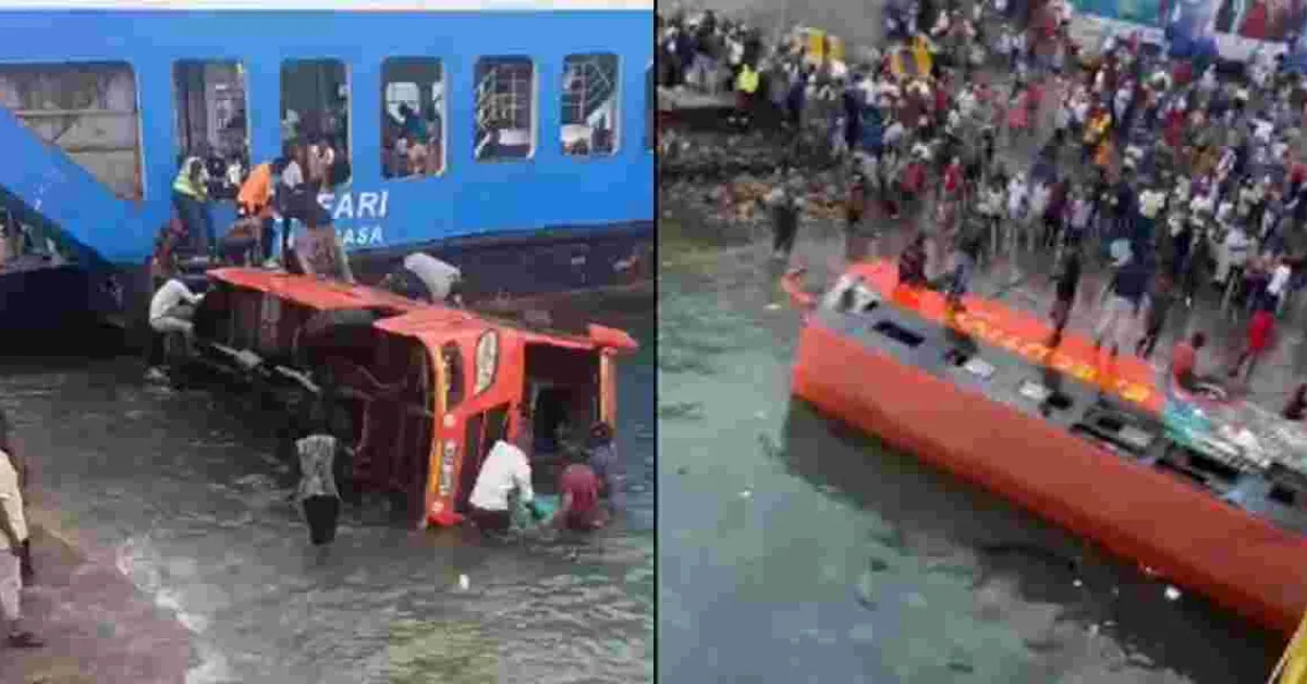 A passenger bus carrying travellers from Ukunda to Nairobi plunged into the Indian Ocean on Sunday morning.