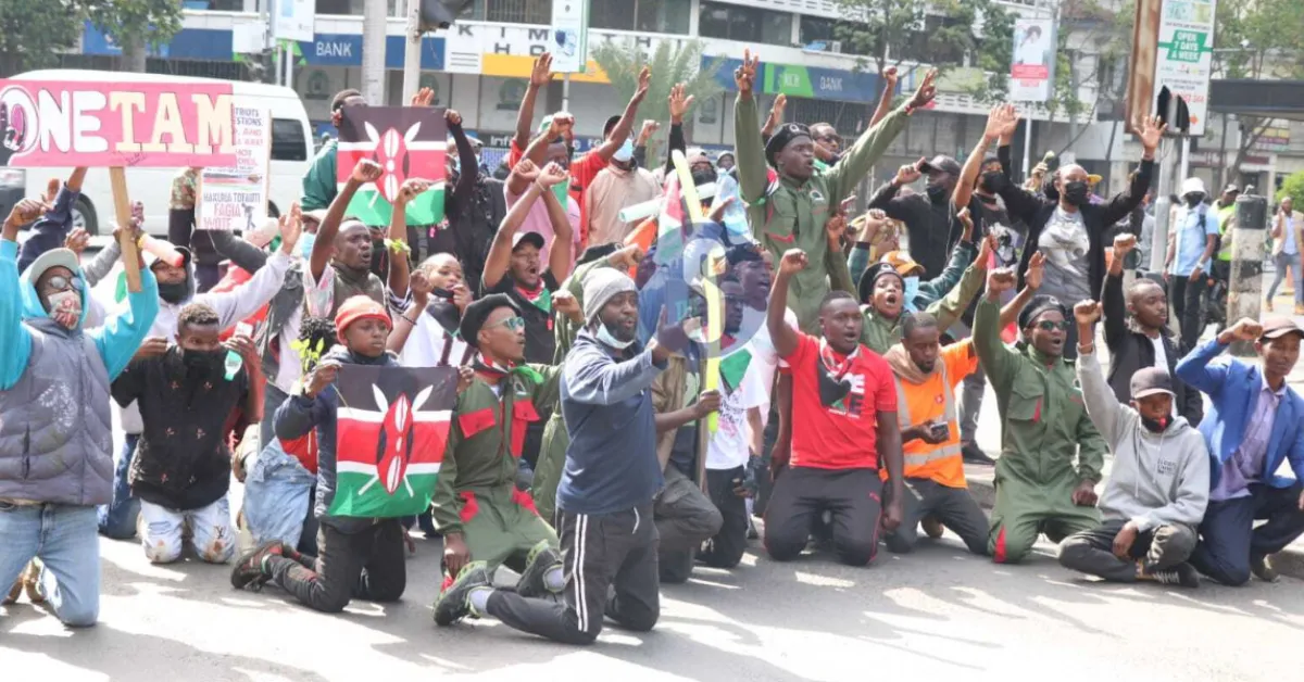 Former Chief Justice David Maraga joined the Nairobi protests at 11:37 am, framing the demonstrations as "the beginning of Kenya's third liberation," with young Kenyans defending the 2010 Constitution through peaceful means. Moments after his arrival, he was reportedly teargassed. In Eldoret, President William Ruto's hometown, protesters marched from the main market through key roads by 11:35 am. By noon, Nairobi was cloaked in plumes of tear gas, with Kenyatta Avenue becoming a major flashpoint as security forces and protesters clashed openly.