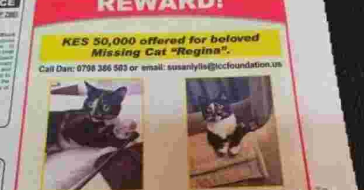 A Nairobi man has excited Kenyans on social media after he offered Sh50,000 cash reward for his missing cat, Regina.