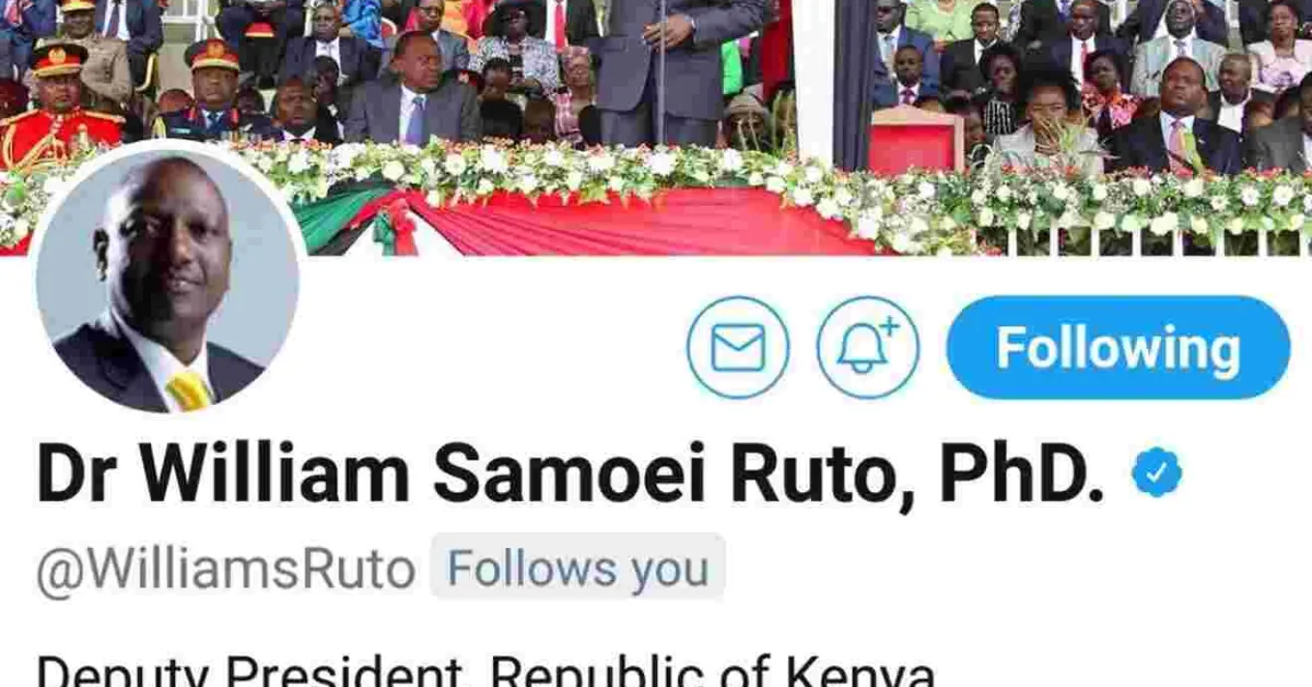 Deputy President William Ruto Quickly Updates Twitter Bio after Acquiring PhD