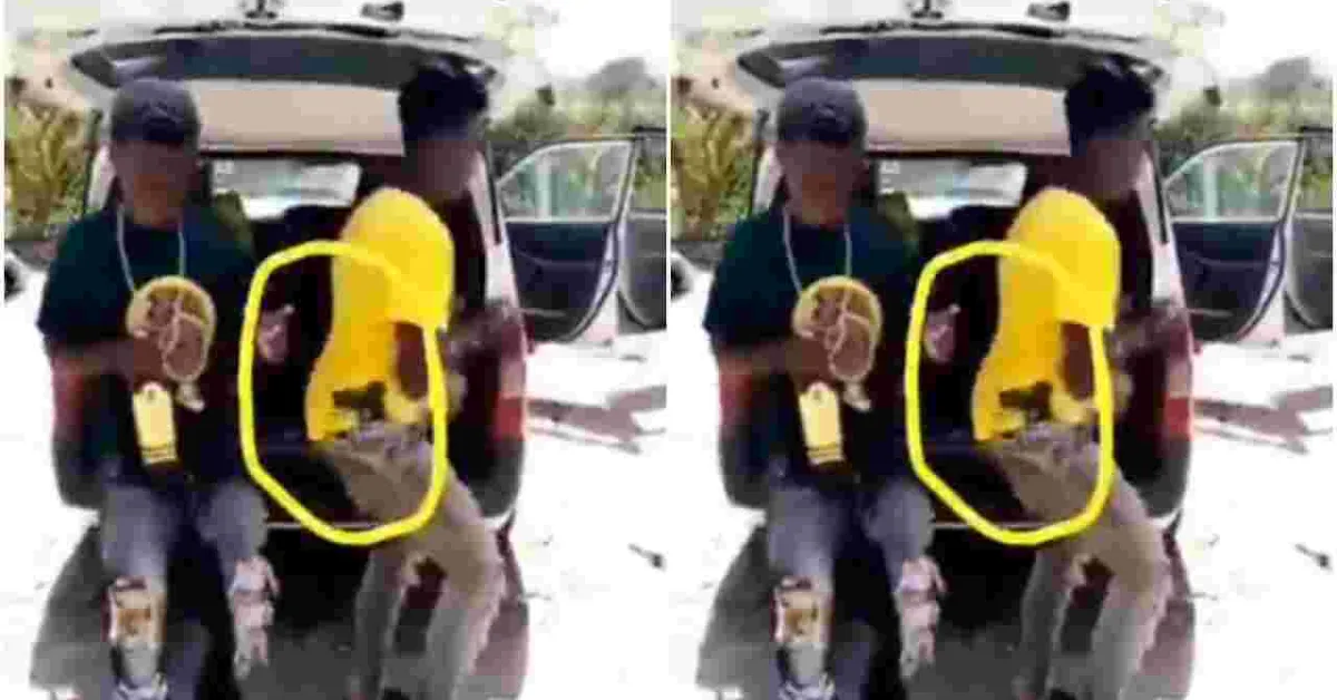 In the video, the two are seen dancing to some reggae tunes playing on a parked vehicle with one of them flaunting a pistol tucked into his waistband while the other is holding a bottle of booze.