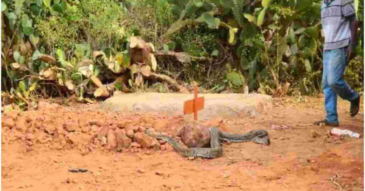 Residents Stunned as ‘Mourning’ Python Slithers into Venom Extractor’s House Before Lying on His Grave