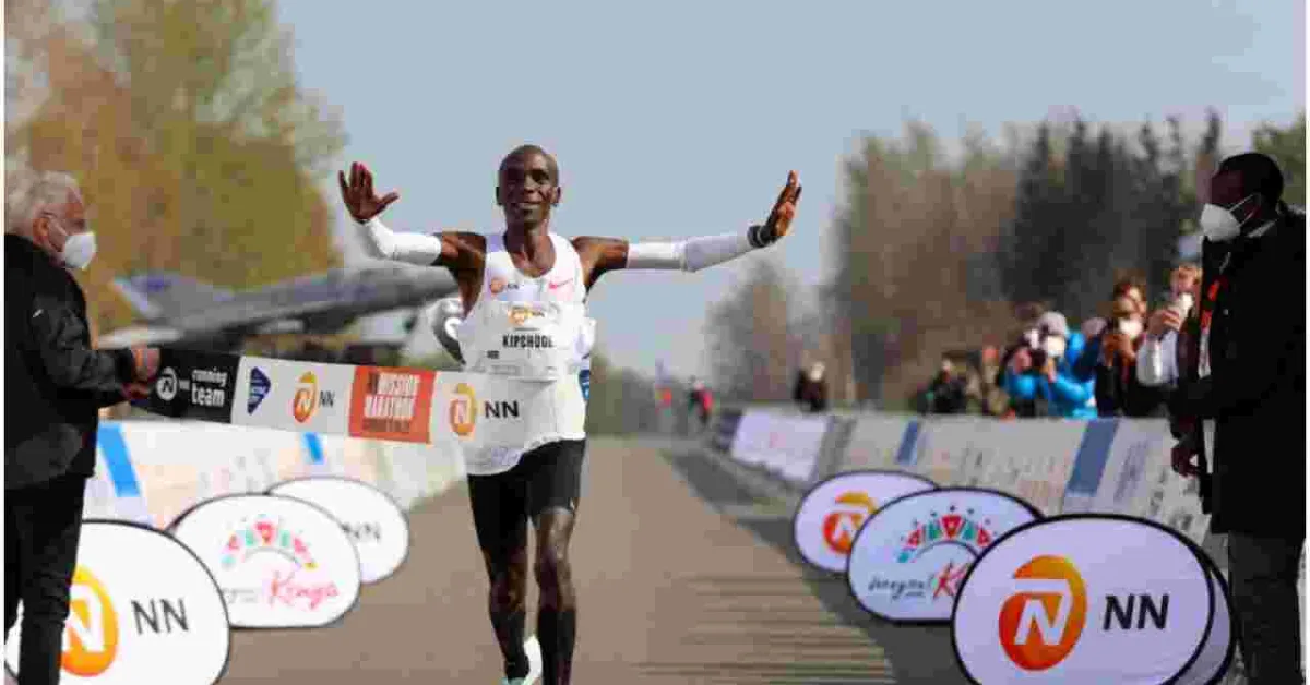 The 36-year-old world marathon record holder clocked two hours, four minutes, and 30 seconds to win the race held at Twente Airport, bouncing back from the 2020 London Marathon nightmare.
