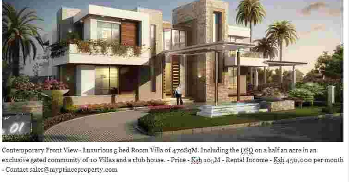 For sale: Luxurious 5 bedroom Villa of 470SqM. Includes a Detached Servant Quarter on half an acre in an exclusive gated community of 10 Villas and a club house. The house features a classic design and contemporary design with secondary gates and expansive well landscaped gardens.